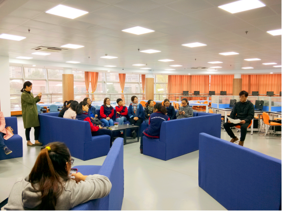 11月8日中午,在图书馆二楼信息共享空间的职工书屋里,一场别开生面的《醉花阴》鉴赏分享会正在火热进行中。