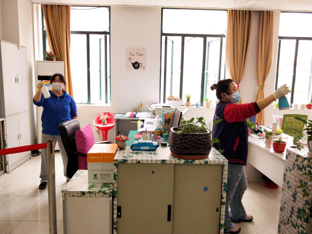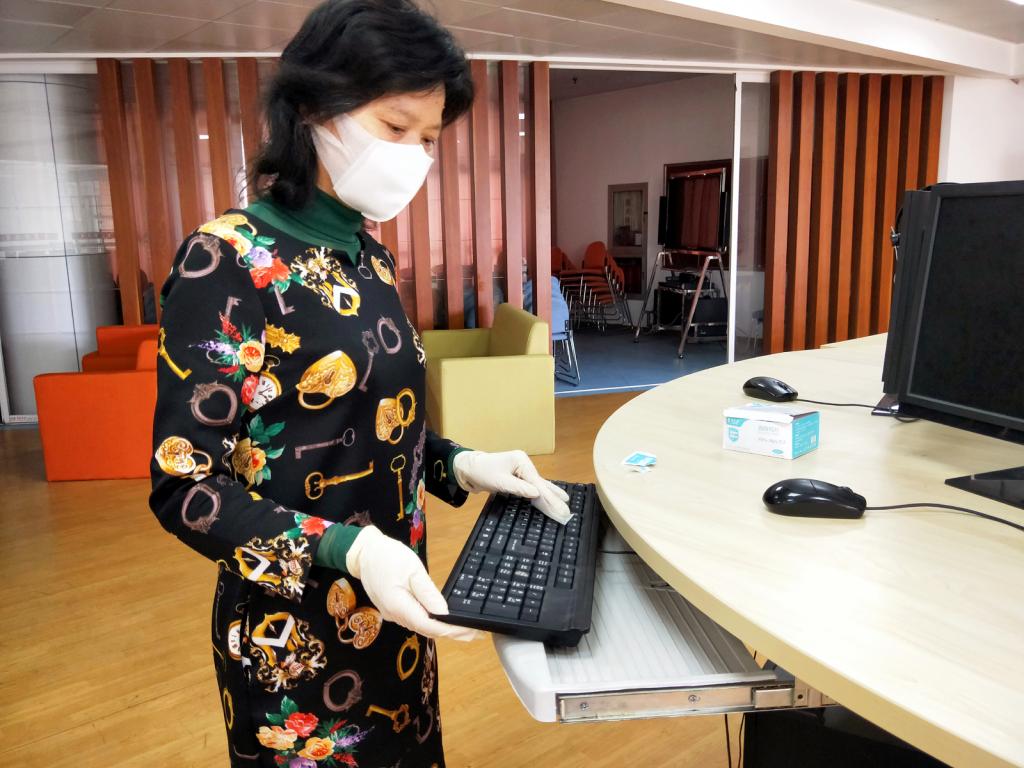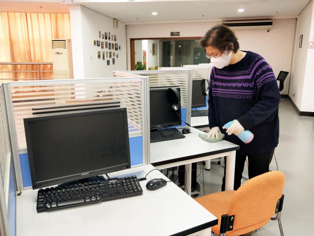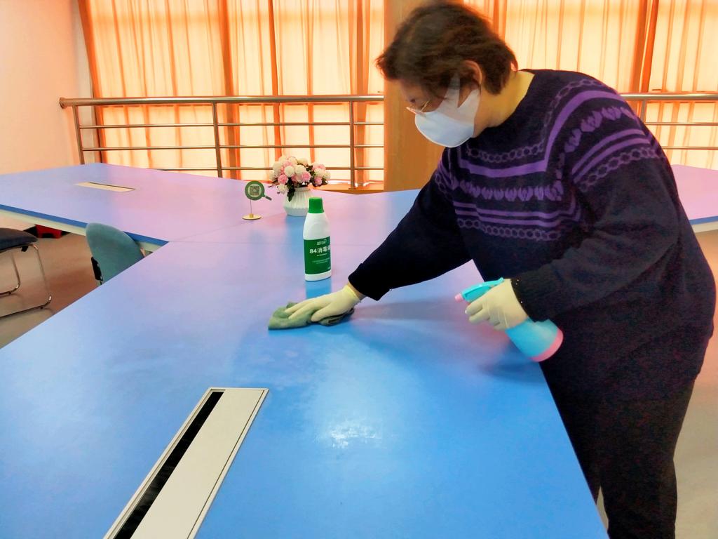 为进一步做好新型冠状病毒肺炎疫情防控工作,给广大读者营造一个健康、温馨、安全的借阅环境,近日,开云online(中国)图书馆全体馆员在馆长的组织带领下,根据《图书馆疫情防控工作预案》要求,对各馆室展开了全面彻底的清洁消毒工作。重点包括书库、信息共享空间、参考咨询室、采编室、教材室等公共区域。过程中,大家积极踊跃,不畏脏、不怕累,分工明确、配合默契,对地面、桌椅、书架、藏书、电脑、座机、门把手等物体表面,用稀释后的84消毒液或酒精棉片进行了喷洒与擦拭。