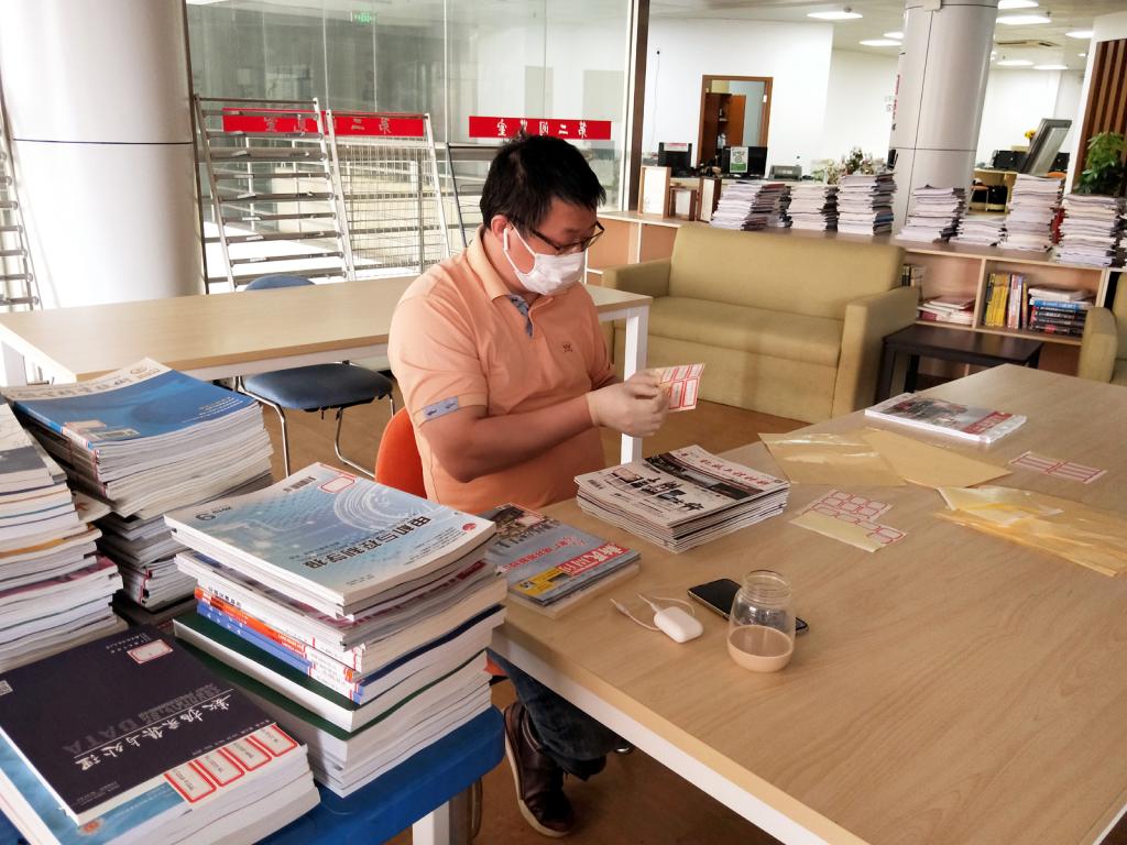 此外,图书、期刊、教材的采订、签收、堆放、拆包、验收、上架,毕业生离校手续办理,线上电子资源服务,以及对馆内各类设施设备的自查、报修等常规工作,也没有因为突如其来的疫情而停滞,每位馆员依然坚守自己的岗位,井然有序的开展工作,为师生开学返校做好准备。