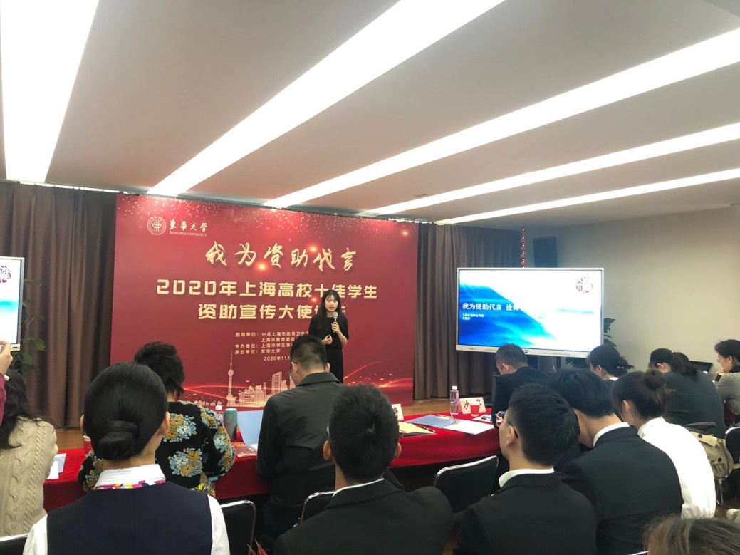 11月21日,第三届“我为资助代言”上海高校十佳学生资助宣传大使评选活动在上海市学生事务中心举行。本次活动由上海市学生事务中心主办,东华大学承办,共有来自全市27所高校参加。