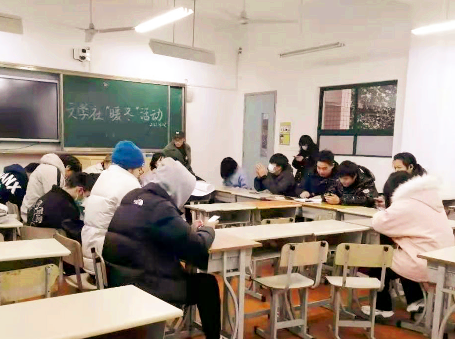 1月6日下午,文学社,一群爱意涌动、暖意融融的小伙伴汇聚一堂,热火朝天地展开了以“暖冬”为主题的社团活动,旨在感受温暖,抒发文思情怀。