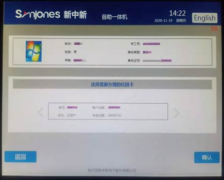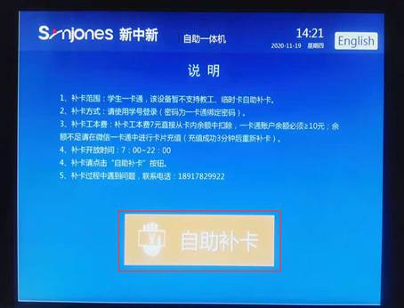 2、 补卡范围:学生一卡通,该设备暂不支持教工、临时卡自助补卡。