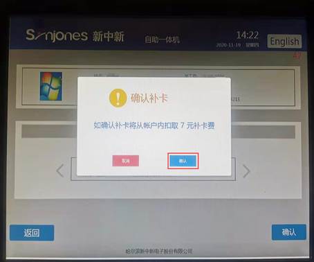 5、 弹窗补卡工本费7元扣款提示,点击“确认”;