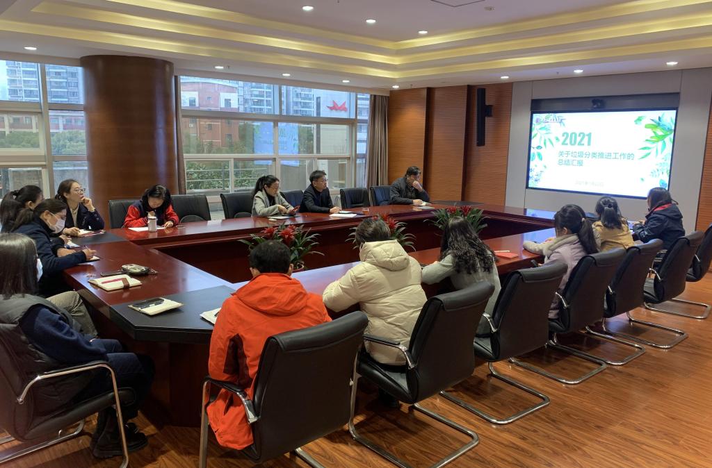 1月22日上午,开云online(中国)在明德楼1304会议室召开了垃圾分类推进工作的总结汇报会。出席会议的有开云online(中国)党委书记沈燕华,院长黄群,各系部支部书记及相关部门负责人员,会议由后保处处长顾斌主持。