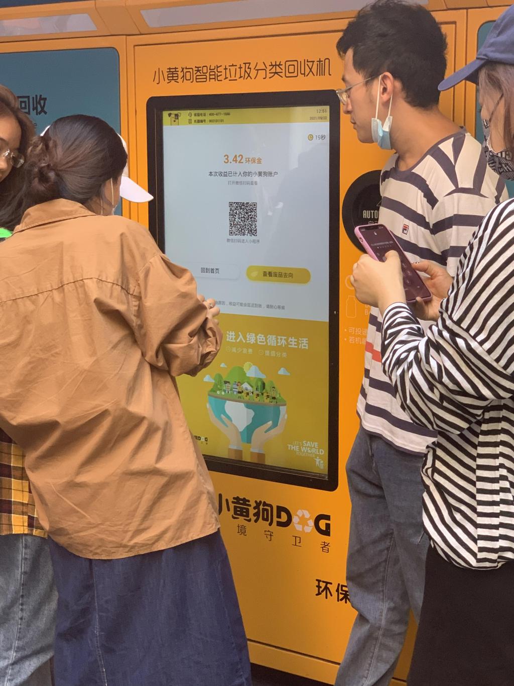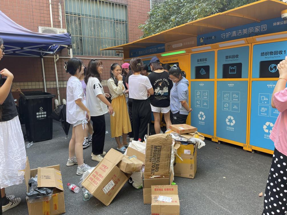 现场同学们纷纷拿来寝室多余的快递纸箱和塑料饮料瓶在工作人员引导下进行试投,短短几分钟时间就能完成所有投递,还赚取了环保金,令同学们感觉非常方便。与传统的垃圾回收方式相比,现在通过回收机进行垃圾回收,能够改变传统垃圾回收的弊端,通过收集扫描二维码就可以赚取环保金,减少了与回收人员的直接接触,方便快捷。此外,功能完善、操作简便智能的前端收集设施,能够引导、激发广大师生自觉进行垃圾分类。