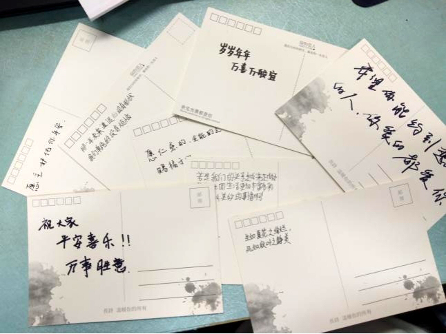 “憧憬未来之前,你希望得到谁的祝福?回忆往昔之时,你希望将祝福送到谁面前?”活动在主持人的开场白中正式开始。接过社长精心准备的明信片,大家纷纷提笔抒怀:“山河宇宙浪漫,生活点滴温暖”、“万事胜意”、“心愿成真”、“前程似锦,功不唐捐”......满满的祝福在明信片上传递,一张张会“说话”的明信片把最暖的话,说给最牵挂的人。