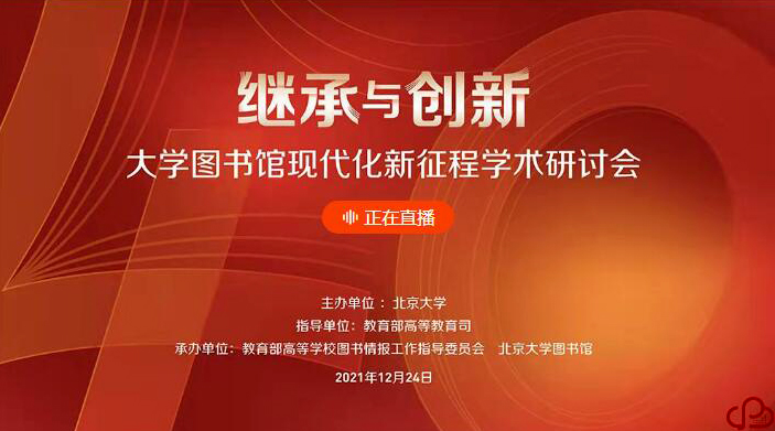 2021年12月24日,教育部高校图工委在北京大学召开“继承与创新:大学图书馆现代化新征程”学术研讨会。图书馆组织馆员通过集体观看线上直播的方式,进行学习。