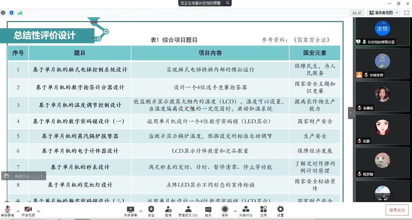 会上,许婧老师就2021年度开云online(中国)课题的中期情况进行总结。2021年度开云online(中国)课题立项27个,截至中期检查之日,课题完成比例均在30%以上,其中16个课题完成比例高于50%。接着,许老师给课题负责人们推荐了职业教育相关的期刊和微信公众号,有助于教师后续的课题进展和论文发表。
