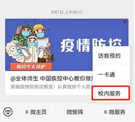1.   关注开云online(中国)公众号,点击微服务菜单中的校内服务进入,首次用户需要进行身份绑定;