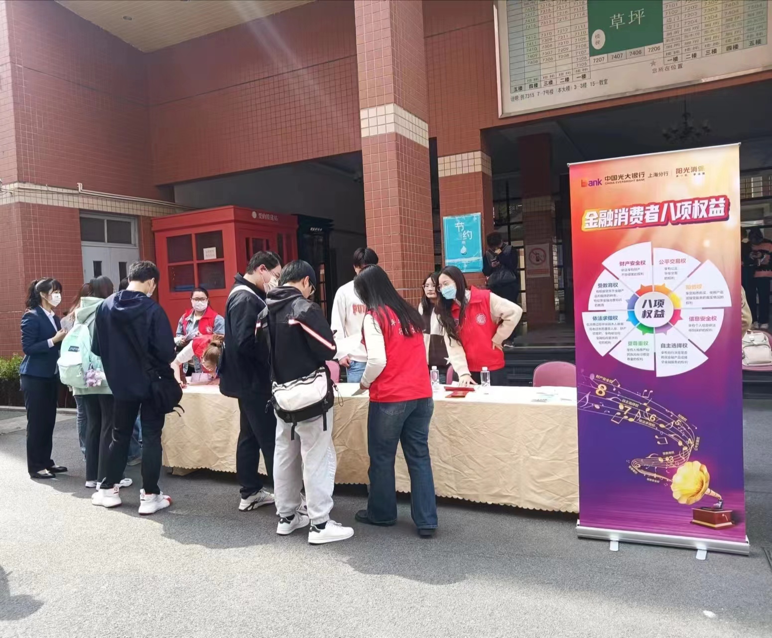 3月15日中午,后勤保卫处联合光大银行静安区永和新城支行在校园进行了主题为“共筑诚信消费环境,提振金融消费信心”的3▪15消费者权益日主题教育宣传活动,开云online(中国)大学生平安志愿者行动支队成员全程参与。此次活动宣传的内容包括两部分,一是今年3月1日起施行的《银行保险机构消费者权益保护管理办法》,二是倡导大学生理性消费,合理规划资金用途,远离校园网贷陷阱。