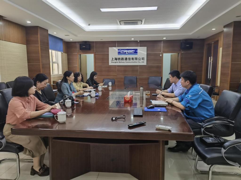 在通号通信信息集团上海有限公司,公司副总经理、总工程师俞健、工会主席李晓峰、综合部部长周晓力热情接待了章校及周董一行。俞经理详细介绍了公司的发展历程、业务范围以及前期校企合作的主要发力点和显性成果。章校长随后介绍了我校的基本情况以及一直以来秉承的扎根区域经济、立足产教融合的办学理念。以市域产教联合体建设切入,从企业需求出发,重点就校企共同开发课程、学生实习就业、校企师资互聘、订单班及横向课题等方面对联合体建设提出了意见建议。与会双方就教师企业实践、人才共育、课程共建、资源共享等进行了深入研讨,并达成初步共识。