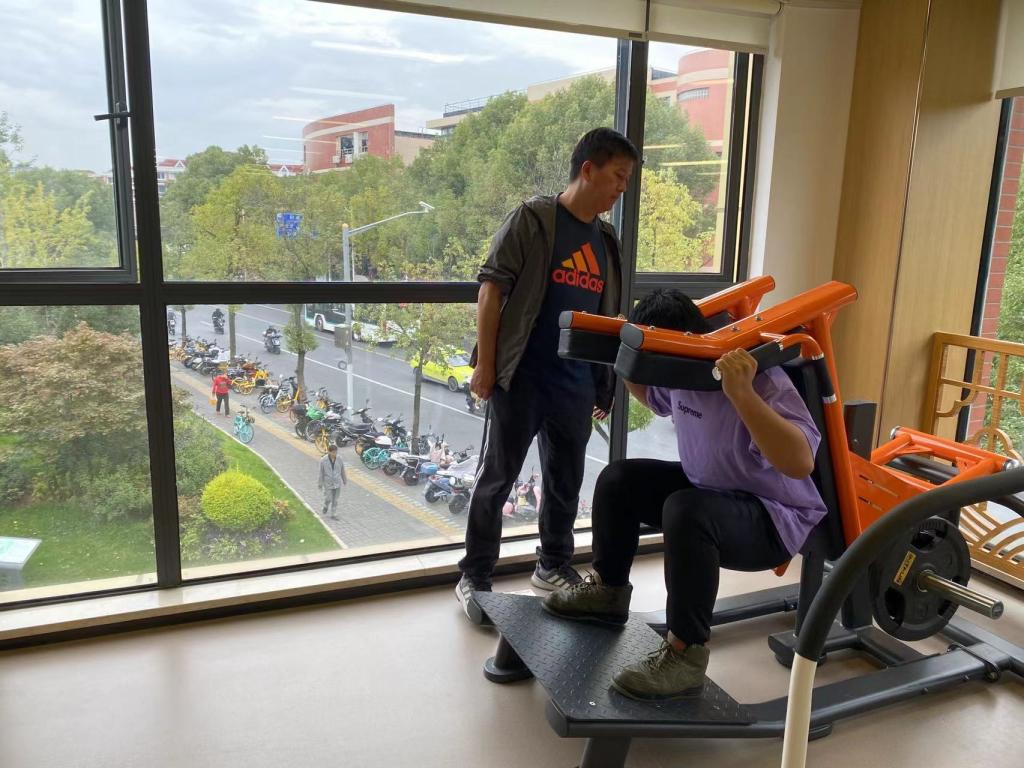 近日,体育教研室党员教师走进彭浦镇社区小镇驿站,开展志愿服务,在社区健身房指导老年人进行科学锻炼,避免锻炼过程中出现不必要的损伤。