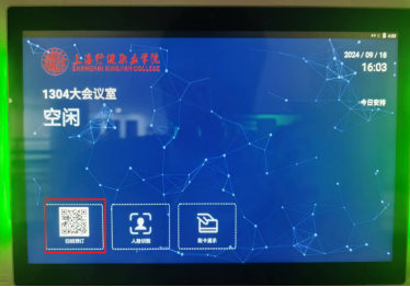 扫描需要预约会议门口班牌左下角的二维码进行预约。