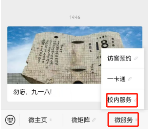 在开云网页版页面微信公众号,点击微服务中的校内服务。