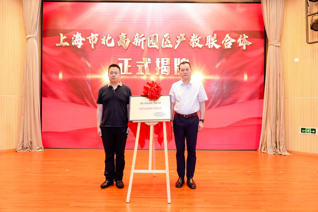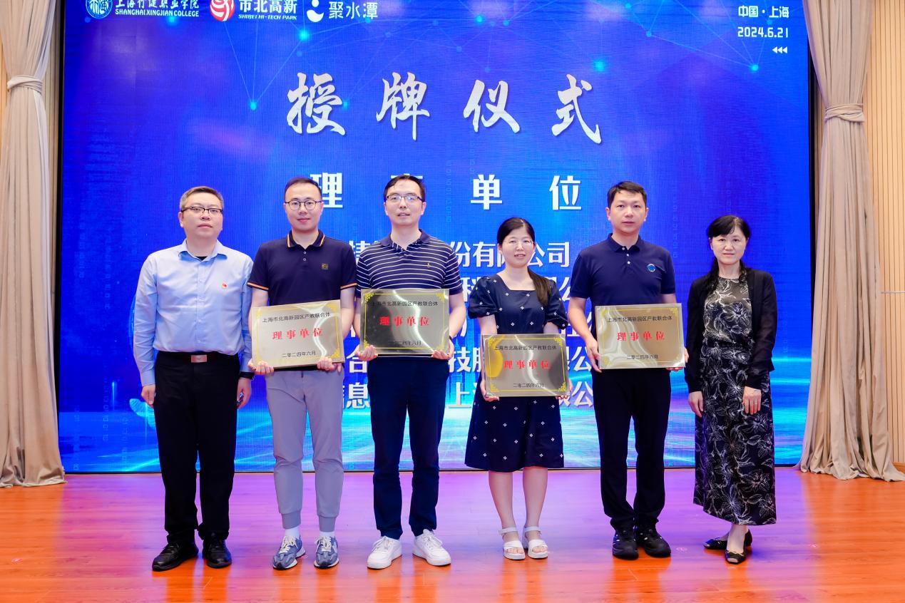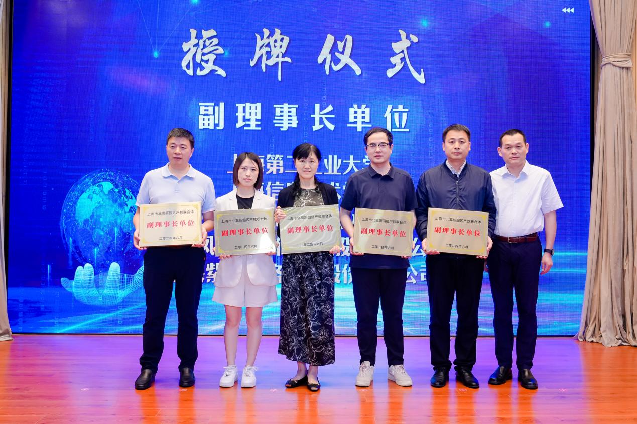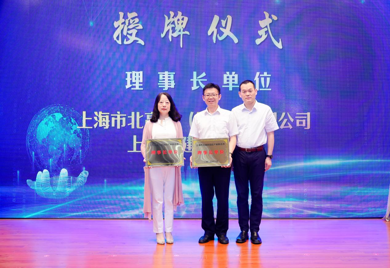 大会现场举行了“上海市北高新园区产教联合体”揭牌仪式。与会领导分别为理事长单位、副理事长单位、理事单位授牌。