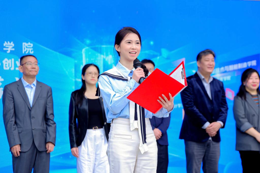 首先,学校党委书记沈燕华为开幕式致辞。她指出,为新质生产力发展提供坚实人才支撑,是高等教育人才培养的时代使命。她寄语全校师生一要向“新”而行,勇于跨越传统的藩篱,不懈探索新知与新径;二需紧握品质之舵,追求卓越,确保可持续发展之道;三应主动拥抱数字变革,积极提升前沿技能,成为数字时代的领航者。希望广大青年“闯”出一片新天地,“创”造人生新价值,在强国建设、民族复兴新征程上绽放光彩、展示才华,为科技创新汇聚磅礴青年之力!