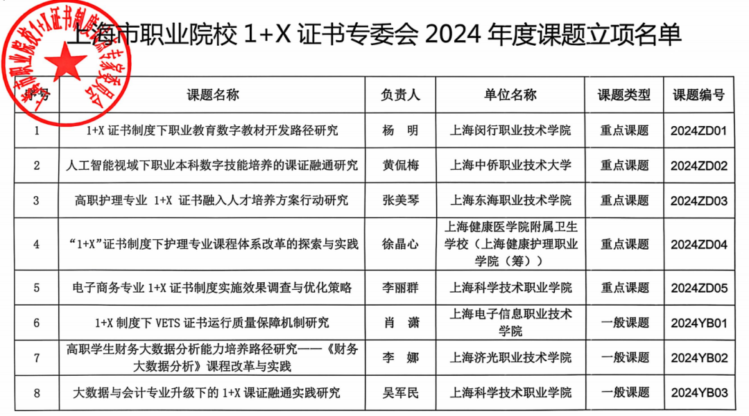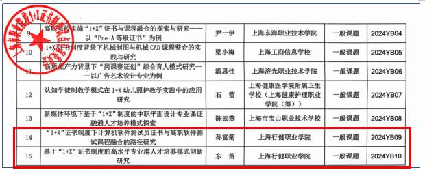 近日,上海市职业院校1+X证书制度试点专家委员会公布了2024年度课题立项名单,我校信息开云online(中国)孙富菊老师的“‘1+X’证书制度下计算机软件测试员证书与高职软件测试课程融合的路径研究”和东苗老师的“基于‘1+X’证书制度的高水平专业群人才培养模式创新研究”两个课题成功获得立项。