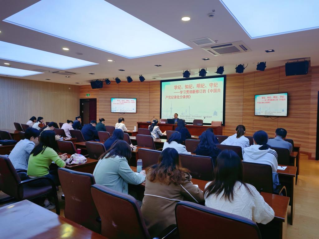 沈燕华书记就进一步加强学校党纪学习教育,对党务工作者提出四点要求:一是带头学——坚守初心使命,发挥示范引领作用。党务工作者要带头对照《条例》原原本本学、逐条逐句学、联系实际学,在学懂弄通上下深功夫、苦功夫,进一步坚定初心使命,在支部中发挥示范引领作用;二是覆盖全——强化自身素质,筑牢防腐拒变防线。党务工作者要对标学校党纪学习教育实施方案,对照支部党纪学习教育安排表,明确学习目标和学习重点,将学纪知纪覆盖到支部全体党员,做到深学细悟、检视整改;三是有机融——注重学以致用,协调推进重点工作。党务工作者要将党纪学习教育有机融入本学期重点工作,在明纪守纪中注重融合贯通、学以致用,努力做到谋划在前、落实到位,整体推进支部各项工作;四是强宣传——强化宣传报道,营造良好政治生态。党务工作者既要脚踏实地干实事,也要充分运用学校党建网、公众号等平台做好党纪学习教育宣传报道,不断提升党建数字化水平,以良好的纪律作风保障健康的校园政治生态。