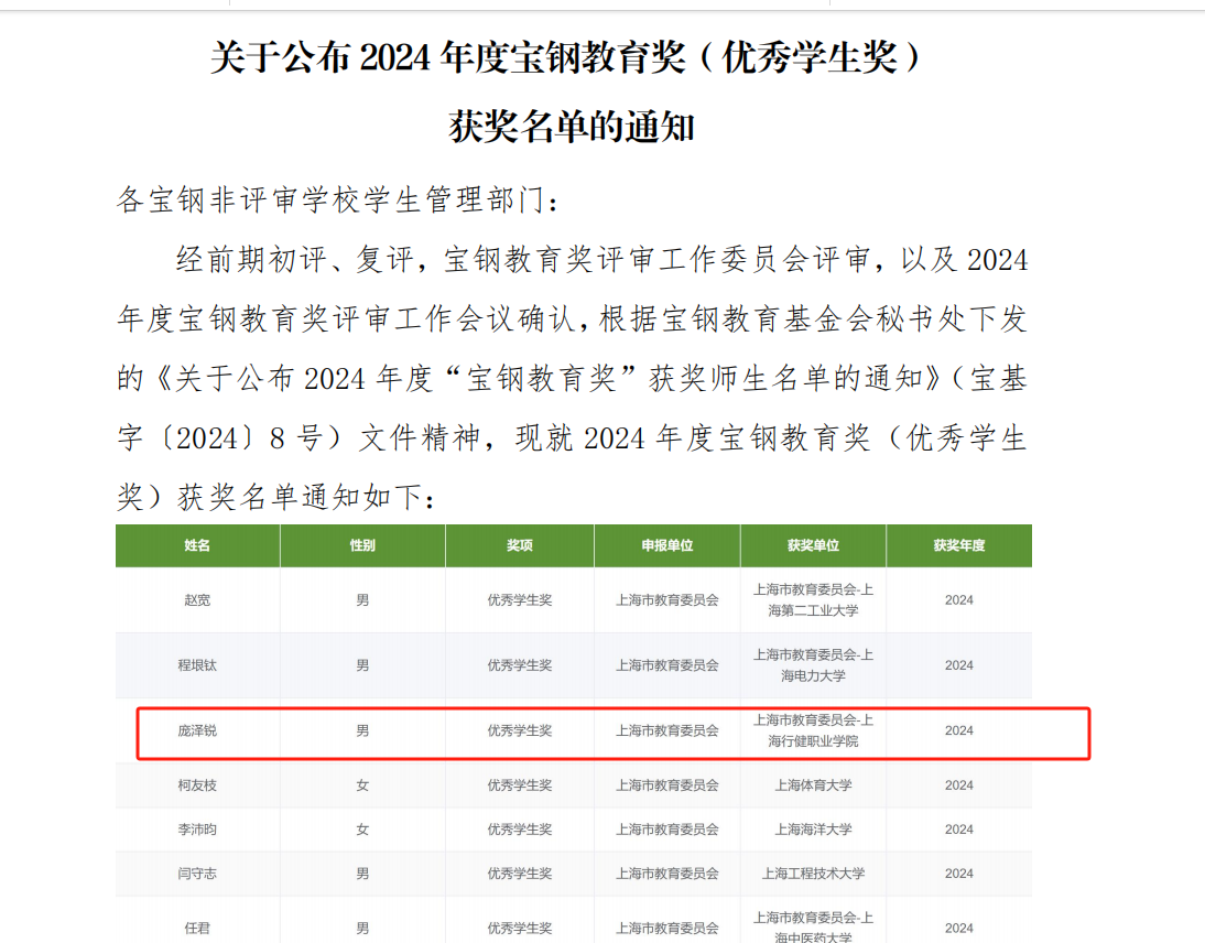 近日,宝钢教育基金会公布了2024年度宝钢教育奖获奖师生名单。我校信息开云online(中国)22级庞泽锐同学荣获2024年度宝钢优秀学生奖。这是本年度全国500名宝钢教育奖获奖学生中唯一的专科生,也是我校学生第三次获此殊荣。