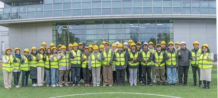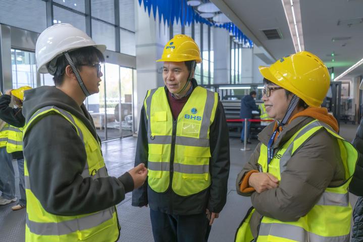 BHS中国区人力资源总监李萍、双元制培训主管李飞热情接待行健师生一行,并引导学员们参观生产车间。车间内,先进设备有序运转,高效生产线尽显智能制造的魅力。李飞主管详细讲解工艺流程、技术要点及质控措施,学员们认真聆听,积极互动,对智能制造有了更直观认识。