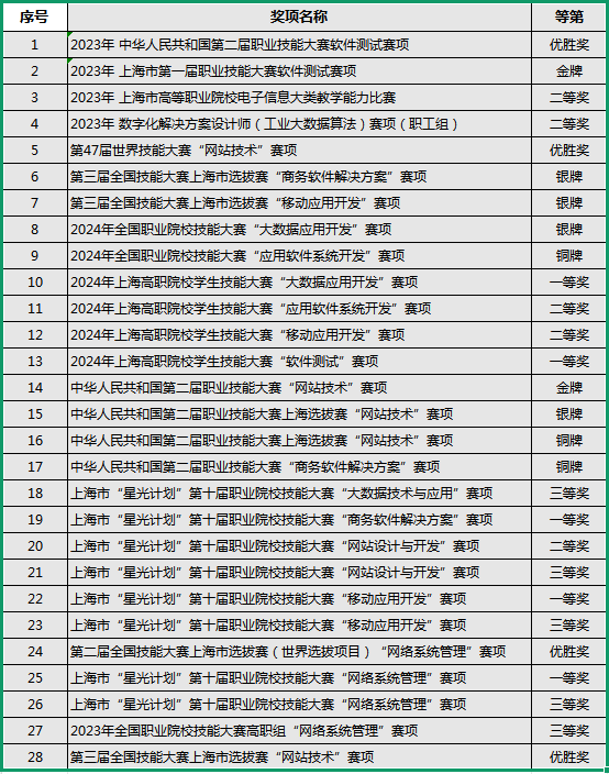 "以赛促学,以赛促教”是软件技术专业群始终坚守的信念。学生在技能竞赛的舞台上大放异彩,屡创佳绩。从第47届世界技能大赛网站技术赛项的优胜奖,到全国职业院校技能大赛“大数据应用开发”赛项的银牌、“应用软件系统开发”赛项的铜牌,再到中华人民共和国第二届职业技能大赛“网站技术”赛项的金牌、“商务软件解决方案”赛项的铜牌……每一次荣誉的获得,都是对学生技能的最好证明,也是专业群教学模式的生动体现。