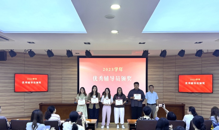 会上,首先表彰沈倩荧、杨婧雯、巴美芳、吴彧君、卜秀新五位荣获2023学年度优秀辅导员的教师,学校党委副书记李越为获奖辅导员颁发荣誉证书。