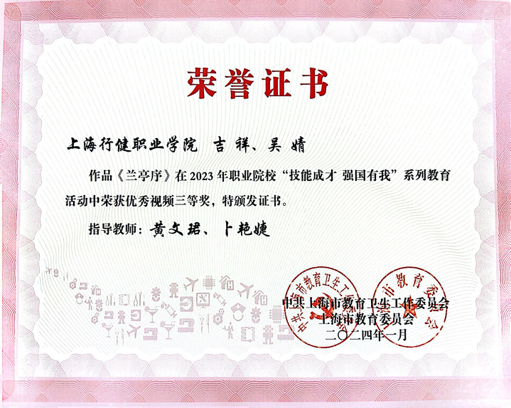 近日,我校收到中共上海市教育卫生工作委员会、上海市教育委员会主办的2023年职业院校“技能成才 强国有我”系列教育活动光荣册。其中,我校荣获“优秀组织奖”,学生作品《仰望星空脚踏实地,拼搏奋进技能报国》荣获文字案例(职业教育榜样人物)一等奖,《传承工匠精神,赓续匠人品质》等5件作品分别获得征文演讲及优秀视频二、三等奖。