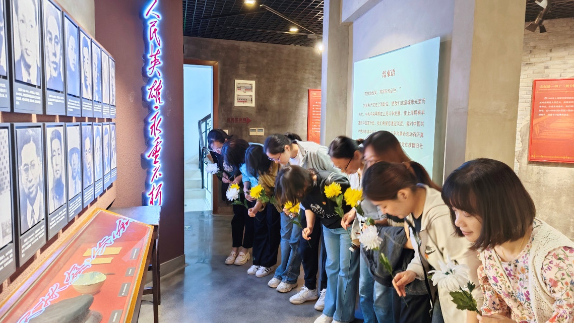 进入纪念馆后,教师们依次参观了各个展厅。在珍贵的历史资料和生动的讲解中,深入了解了1923年中共三大后中央局机关在上海“三曾里”进行的革命斗争历程。“人民英雄永垂不朽”的红色题字格外引人注目,老一辈无产阶级革命家炽热坚定的理想信念,艰苦奋斗、甘于奉献的崇高事迹和严于律己、恪守纪律的高尚品格,深深触动了每一位教师的心灵。