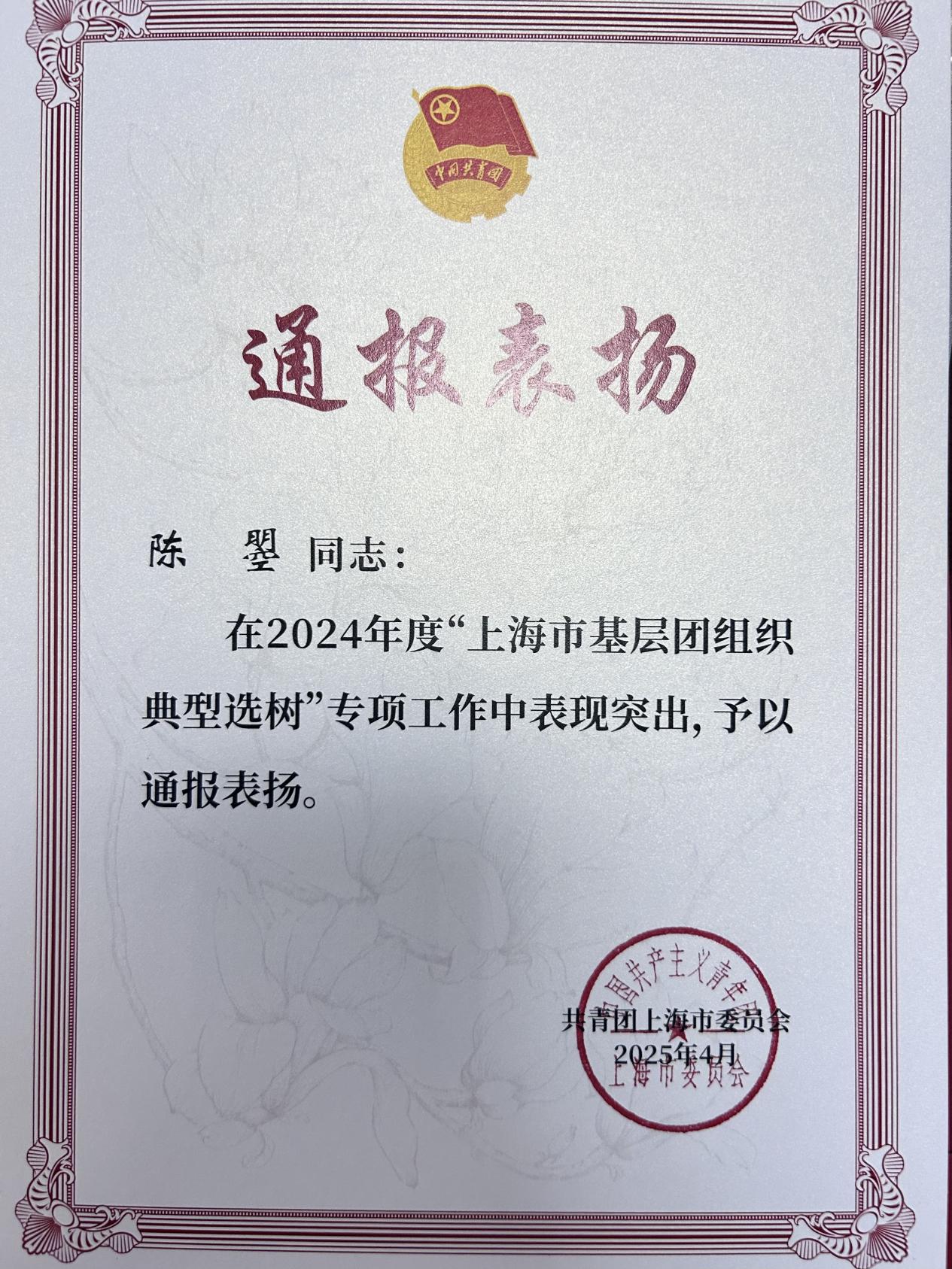 上海市基层团组织典型选树工作,是以习近平新时代中国特色社会主义思想为指导,坚持大抓基层的鲜明导向,全面推进团的基层组织建设,强化典型示范引领作用,推动新时代基层团建高质量创新发展的重要举措。近日,共青团上海市委公布了2024年度上海市基层团组织典型选树表扬名单。我校外语开云online(中国)团总支在2024年度“上海市基层团组织典型选树”中表现优异,荣获通报表扬。外语开云online(中国)团总支书记陈曌获得个人通报表扬。