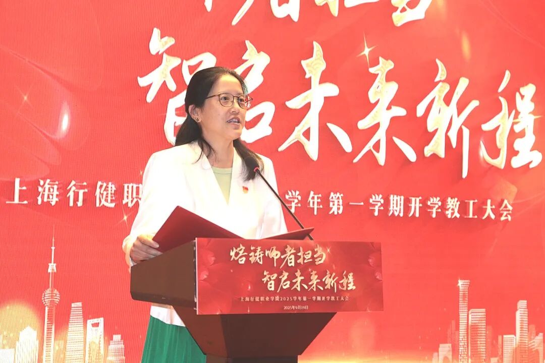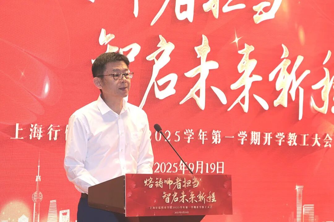 学校党委书记沈燕华在致辞中高度肯定了全体教职员工的辛勤付出和显著成绩,并对新学期提出了三点殷切希望:一是深化专业素养,要求教师不断加强学习,主动对接产业需求,成为既懂教学规律又懂产业发展的行家里手;二是拥抱数字变革,鼓励教师积极探索数字技术与教育教学的深度融合,争当智慧教育的探路者和赋能者;三是弘扬教育家精神,倡导教师以“心有大我、至诚报国”的理想信念,将个人发展融入教育强国建设伟业,成为学生敬仰的榜样。