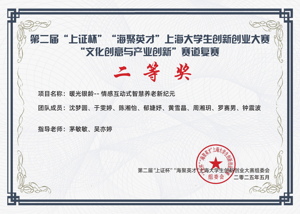 为提升我校学子科技创新能力,为同学们创造更多接触、学习世界前沿科技创新项目的机会,我校创业指导站针对此赛事进行了积极的动员并开展了赛制、赛情分析。最终,创意设计开云online(中国)选送的《暖光银龄——情感互动式智慧养老新纪元》项目在“文化创意与产业创新”赛道复赛中获得二等奖,这是我校在该项赛事中的首次获奖,更是我校学子在国际化双创赛事上与本科、研究生同场竞技中迈出的一小步。