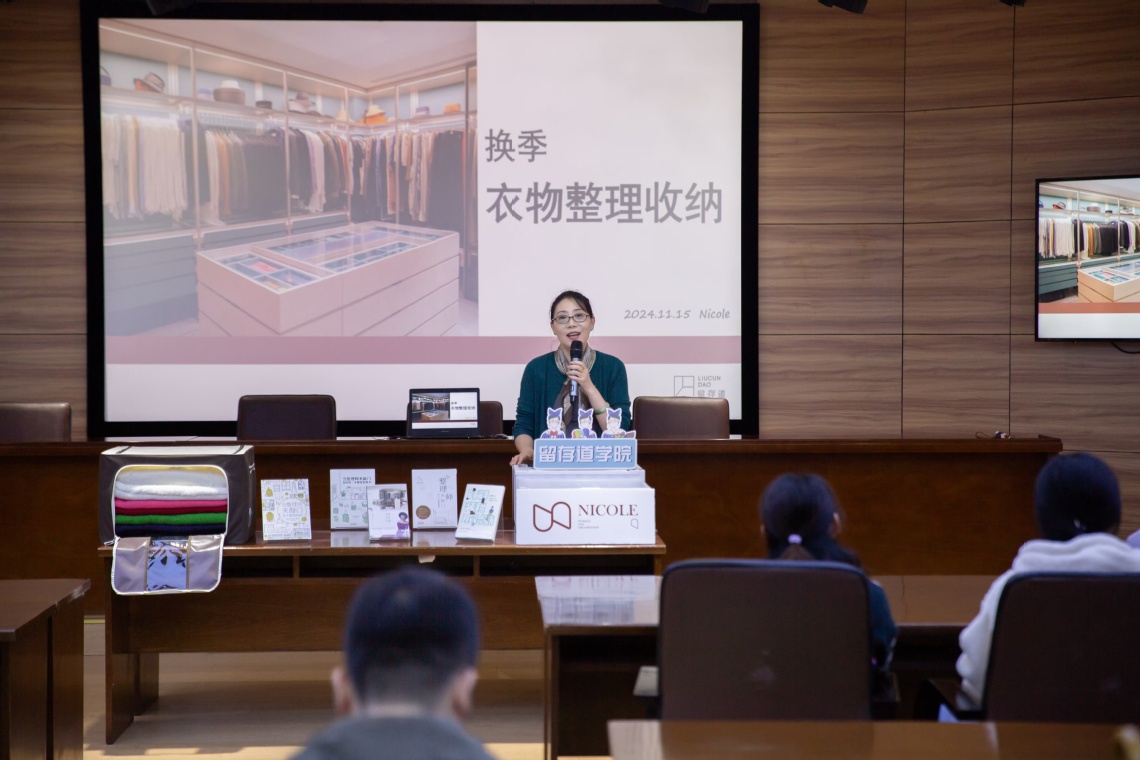 活动中,留存道老师担任主讲,为各位老师讲解了什么是整理收纳,整理收纳不仅仅是对物品的简单归置,更是对生活理念和态度的体现,主要包括规划、清空、分类、筛选、收纳、维护。除了理论讲解,老师还亲自示范了收纳工具和技巧的使用。她详细介绍了各种收纳工具的特点和适用场景,并教授了如何根据物品的性质和用途进行合理分类和收纳。