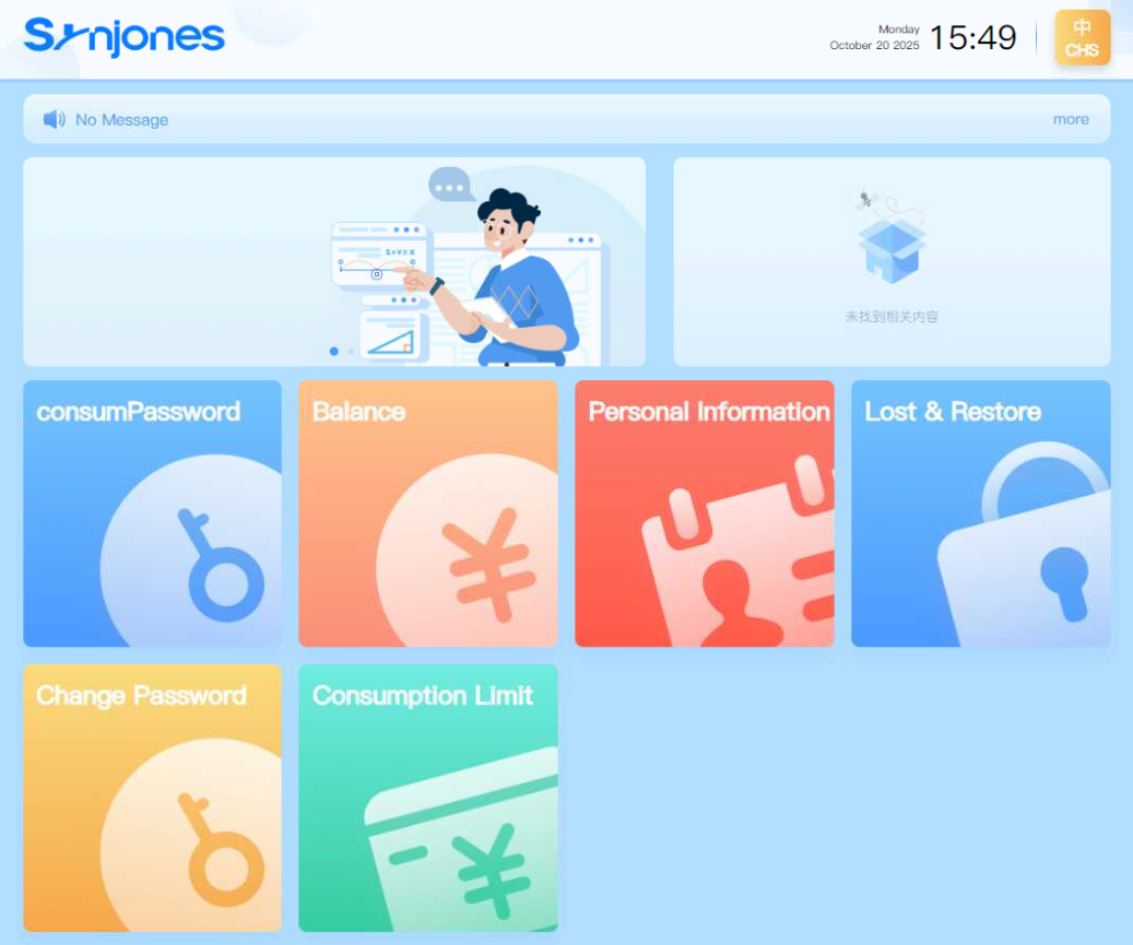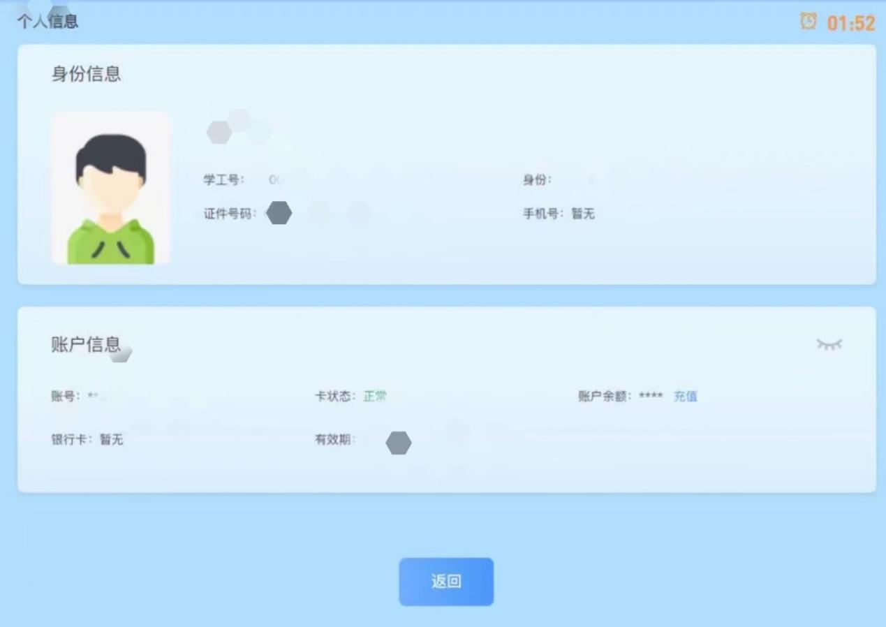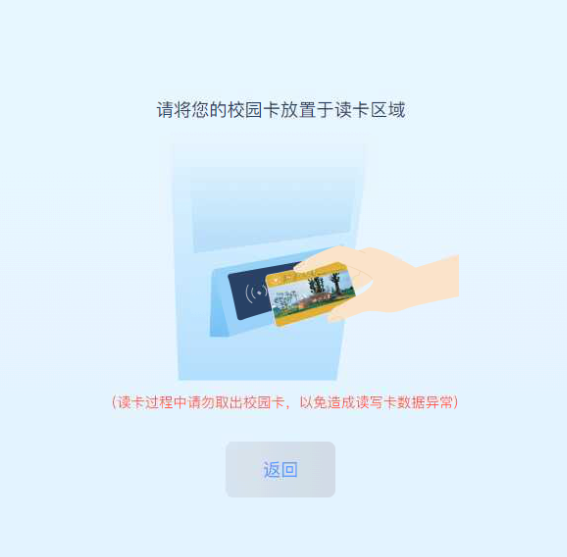 点击校园卡,然后如下图所示,将校园卡放在读卡器上,等待读取完成之后就可以查询个人信息。