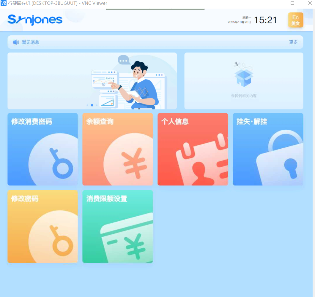 1.圈存机界面可以切换中英文,点击右上角黄色按钮就可以切换,