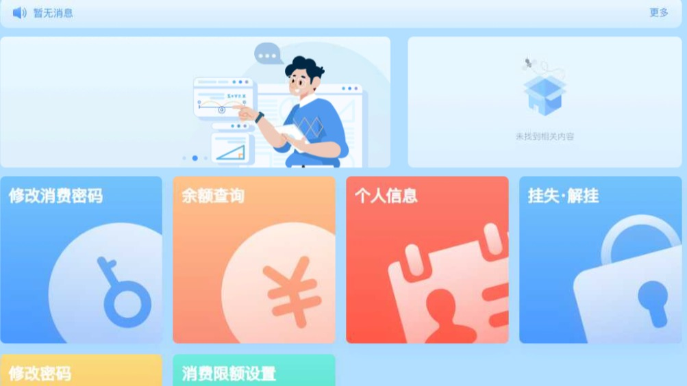10.23 2025信息中心一卡通、自助服务说明信息中心一卡通、自助服务说明一、一卡通一卡通消费方式分两种实体卡和虚拟卡(二维码支付)进行消费。虚拟卡可进行微信充值、二维码支付。食堂餐厅、小卖部和知行楼大厅罗森超市可同时使用实体卡和企业微信校园虚拟卡。学校大门、宿舍楼宇门禁、浴室洗浴、图书馆进入和借阅数据仅可使用实体卡。自助补卡机、圈存机位于知行楼底楼罗森便利店对面,服务时间为:7:00~22:00。一卡通使用指南/2025/1021/c903a32693/page.htm自助补卡机使用指南/2024/0604/c903a14875/page.htm圈存