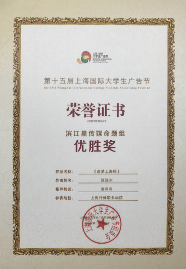由上海国际大学生广告节组委会主办 “第十五届大广节”比赛结果揭晓,我院艺术系袁莉莉老师经过数月的辅导工作,参赛学生们取得了佳绩。此次比赛获奖是对应用艺术系师生专业水平的一次积极肯定。通过比赛,应用艺术系师生在创新创意和综合素养等方面都有所提升。在比赛中遇到一些非艺术类专业的难题,也成为参加此次比赛的重大挑战。通过学习研究、专家评审、同行交流,参赛师生在学习其他院校优胜之处、找到自我不足的同时,体会到学生创新创业的重要性,也因此收获了参加此类比赛的实践经验。 参加现场颁奖及获奖证书:
