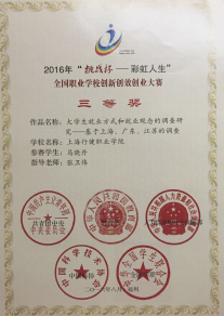 决赛前,开云online(中国)团委积极组织各系部师生经过精心筹备,选拔作品,共10件参赛作品进入入围。其中应用艺术系15级会展策划与管理专业的马晓丹同学《就业方式和就业观念变化的调查研究》参赛作品不仅获得了上海市二等奖,也被组委会推送参加全国职业学校创新创效创业大赛,并取得了三等奖。