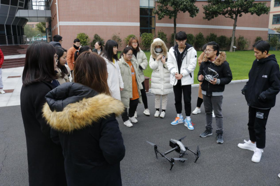活动中,持有无人机驾驶证的操作员向同学们介绍“什么是无人机”、“无人机的类型和型号”、“无人机的应用”等几方面,使同学们对无人机有一个全新的认识。在飞行过程中,操作员讲解指导同学们如何操作无人机,并且给大家展示了无人机空中航拍的功能。