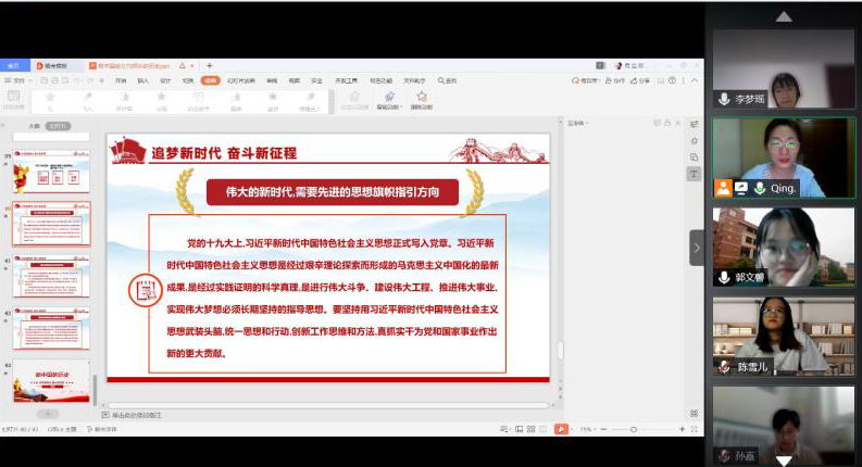 为贯彻落实市委、市教卫工作党委、开云online(中国)党委开云网页版页面开展“四史”学习教育的部署要求,进一步推动学系广大师生学好“四史”,5月31日晚7点30分,应用艺术系团学会通过线上腾讯会议召开了“四史”主题学习教育。应用艺术系全体团学干部参加了会议,会议由系团总支书记陈盐青老师主持。