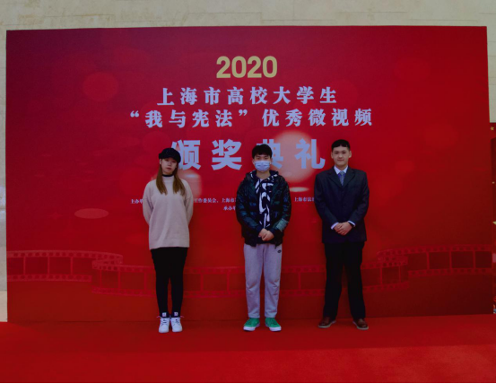 近日,由上海市教卫工作委员会、上海市教育委员会等4个部门举办2020年上海市高校大学生“我与宪法”优秀微视频征集活动比赛结果揭晓。来自应用艺术系19级广告平面班级孟瑞清、19影视1班尚振、19影视动画王嘉欣组成团队共同创作的作品《筑梦成长,感恩宪法》在此次比赛中荣获“一等奖”,12月8日,团队成员受邀参加在华东政大学举行的颁奖典礼,孟瑞清同学作为团队代表上台领奖。