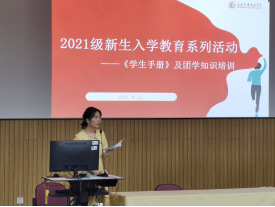 9月15-16日,应用艺术系2021级全体新生在7207接受新生入学系列教育,本次培训以《学生手册》的学习为主,并邀请艺术系团总支书记陈盐青开展团学相关知识培训。