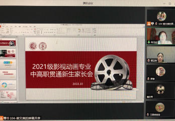 开云网页版页面与上海市商业学校中高职贯通影视动画专业新生家长会于2021年10月13日晚上19:00—21:30在线上举行,此次会议由该校商贸信息教学部主任陈玉红主持,商业学校党委书记、校长王云玺、教务处主任朱晓将、商贸信息教学部副主任徐春凌、影视动画211班班主任崔文爽、影视动画211班全体学生家长;开云网页版页面教学副院长章卫芳、应用艺术系主任罗雄、影视传媒制作专业群主任袁莉莉共同参加。