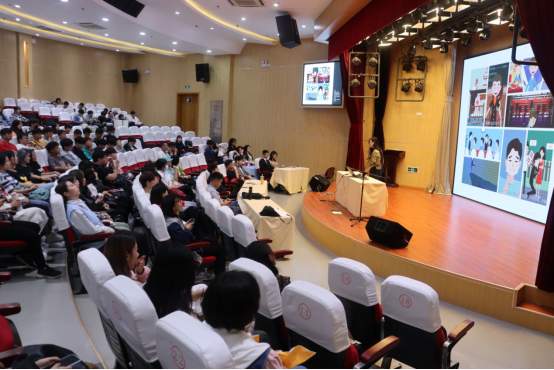 首先,袁莉莉针对本专业基本情况、课程体系、专业发展趋势、专升本情况以及就业前景等方面,为21级新生进行了全面细致的介绍与分析,并展示了往届学生的优秀作品,表达了对2021级新生的期待和祝福。