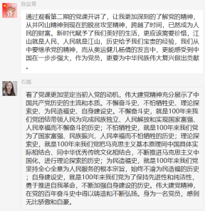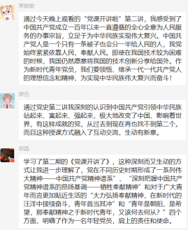 收看党课开讲啦第二期,支部党员深受感动和震撼,课程中连线了第三十二届奥运会我国首金获得者杨倩,当她介绍20世纪初期质疑中国的“三个问号”:“中国何时能参加奥运?中国何时能在奥运会上拿第一枚金牌?中国何时能举办奥运会?”,随后列举了1932年刘长春的独自赴美参赛;1984年许海峰在第23届洛杉矶奥运会上为中国实现奥运金牌零的突破;2008年在北京举办第29届奥运会。从西方国家的质疑,到奥运赛场上的不能被忽视,展现出来的不仅仅是奥运精神在东方的传播和发展,更是一个国家的崛起。也让我们感受到国家强大的过程中一步步走来的艰辛和不易,伟大建党精神已经深深地融入到国家、民族和人民的血脉当中,成为中华民族强健的脊梁。
