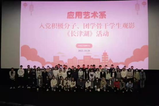 为庆祝中国共产党成立100周年,持续深入党史学习教育,进一步加强应用艺术系团学干部和入党积极分子的党史观和爱国主义教育观,激发广大学生的初心使命和责任担当,10月29日,应用艺术系党支部组织学系19级入党积极分子、团学骨干学生集体观看爱国主义教育影片《长津湖》。