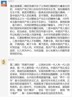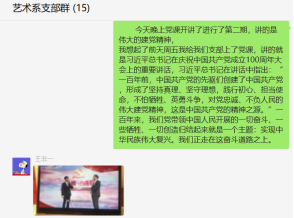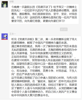 支部党员感到,作为一名党员教育工作者,站在“两个一百年”奋斗目标的历史交汇点上,深感责任的重大。面临科技发展的第五次浪潮,面对知识经济的挑战,人才的竞争就是国家的竞争。学生是未来国家的财富,是国家振兴的希望。我们要努力提升人才培养质量,培养良好品德,发扬创新精神,让学生掌握实践能力,最终能顺利接过国家建设者的接力棒。