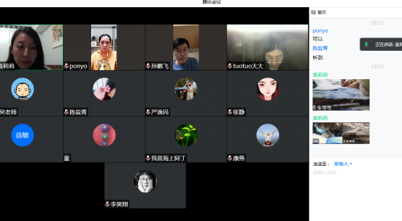 一方面以问题为导向,介绍二周来的网络教学情况,提出较2020年不同的是,在校学生同一宿舍、不同年级、不同专业,同时在线学习的困扰;也提出了全时上课的实训环节管理难的问题。专业群的老师们,以自身经验而谈,提出可通过资源互补,使用耳机解决同一宿舍上课冲突的问题;在实践环节中,可打开摄像头,对准绘制或操作屏,使老师能实时指导、管理,且发布课堂练习将实践作业上传,及时点评修改,提升学生的自控力以及课后作业的完成度。至于个人环境隐私问题,可通腾讯会议中的修改背景、替换背景、模糊背景等功能来解决。