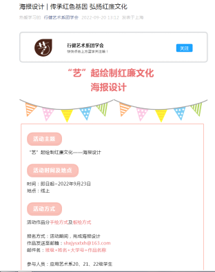 按照九月开云online(中国)开展党风廉政建设月的活动要求,艺术系支部在学生中开展了红廉文化主题教育活动,活动由支部组织,团总支和各班级具体实施,从9月15号持续到9月23号。