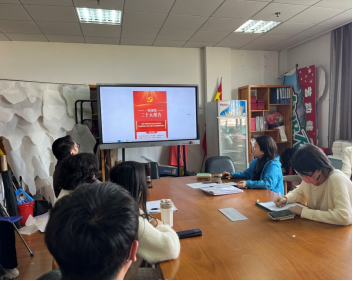 邝姗书记先带领教职工从整体上学习了二十大报告的内容,她借助多媒体进行展示,二十大指出,从现在开始,中国共产党的中心任务就是团结带领全国各族人民全面建成社会主义现代化强国、实现第二个百年奋斗目标,以中国式现代化全面推进中华民族伟大复兴。在社会主义现代化强国建设中,教育起基础性、战略性支撑作用。