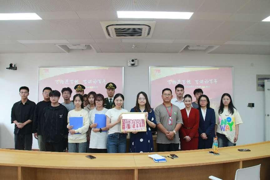 活动分为四个篇章:红色记忆青年溯、廉洁故事青年讲、时代寄语青年颂、与廉同行青年说。随着两名礼兵护送文物进场,中共一大纪念馆藏品保管部张安可老师为文物解开神秘面纱,这是一个用炮弹壳制作的花瓶。花瓶通高15.5厘米,底部直径9厘米,上下凹槽处涂有四色彩带,瓶身上有绿色颜料写成的“赠给亲人”。一大纪念馆讲解员苏顺顺为在场师生生动讲述文物背后的感人故事。在场师生轮流上台观看文物,并向一大馆员提问交流。中共一大项目代表张璨老师将一大会址拓印版画赠与我院。通过近距离接触、感受革命文物的历史内涵,同学们真切感受到志愿军战士不畏艰苦、不畏强敌的英雄气概和英勇顽强、保家卫国的理想信念,从他们身上汲取了红色文化的养料,启迪自身保持艰苦奋斗精神,磨砺坚强意志,乐观昂扬向前。